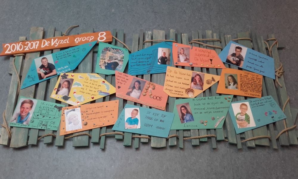 Groep 8 werd na afloop toegezongen door de juffen met een laatste groet. De kinderen hadden daarna nog een prachtig cadeau ter herinnering aan hen. Het cadeau sloot aan bij het thema van de musical (zie foto). Deze krijgt zeker een mooi plekje in de school.