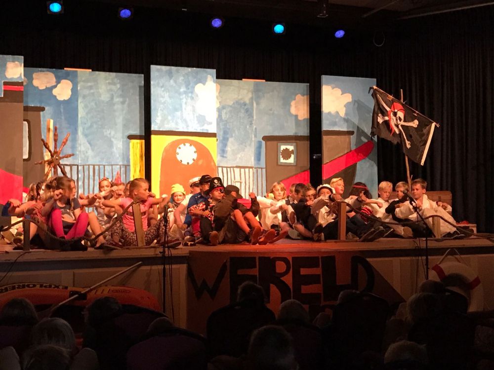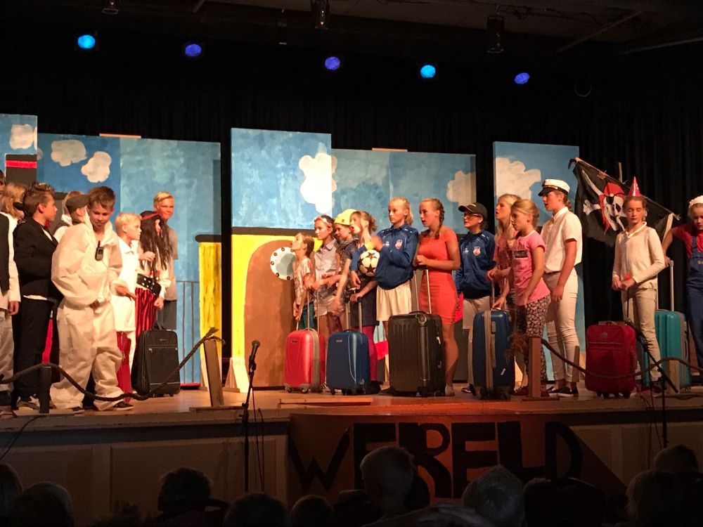 HAUWERT – De Vijzel neemt dit jaar afscheid van 13 leerlingen. Dinsdag 18 juli hebben de kinderen van groep 7 en 8 de musical Alles overboord! De zaal van dorpshuis De Werf zat zowel ’s middags als ’s avonds helemaal vol. De kinderen waren goed voorbereid, hadden de zenuwen voldoende onder controle en speelden echt heel goed!