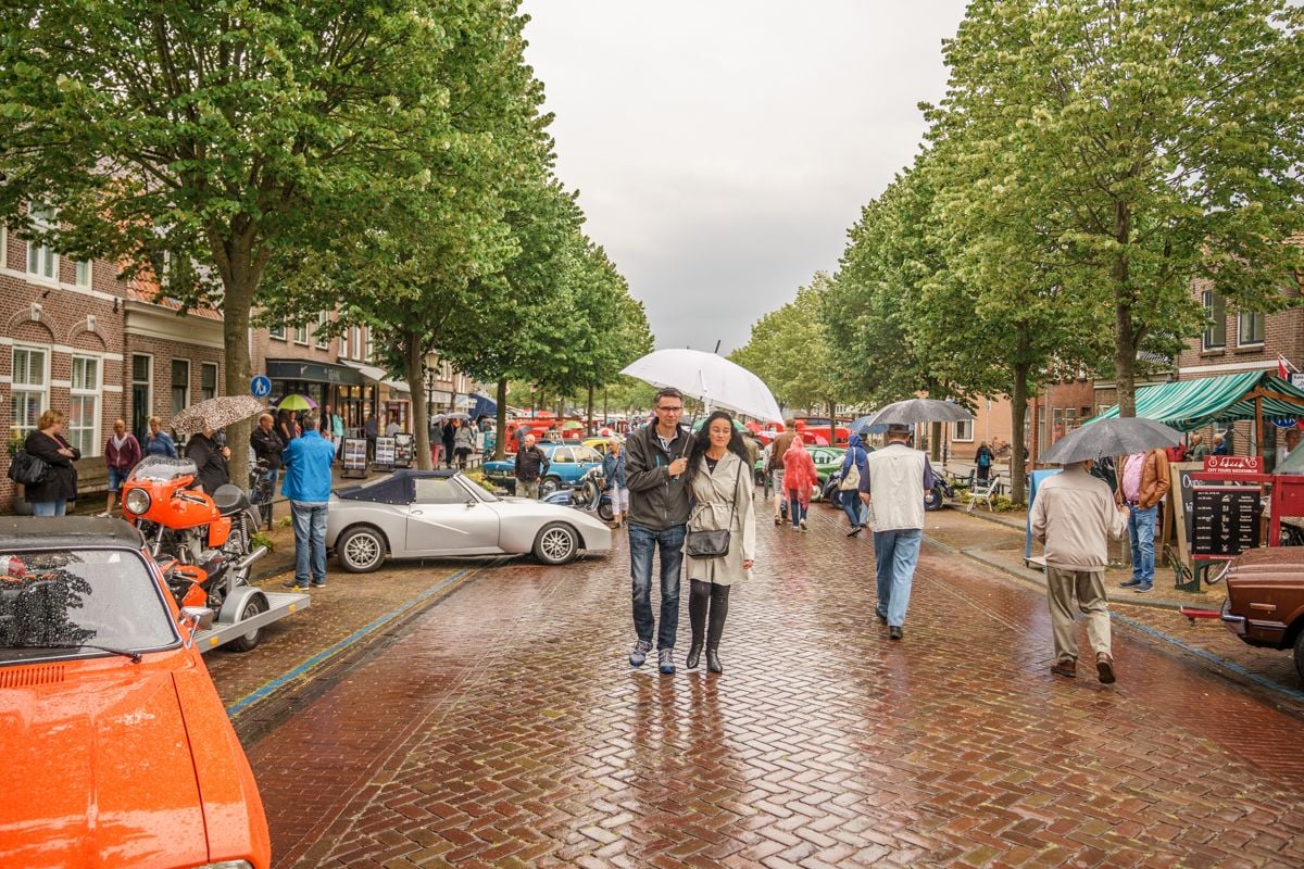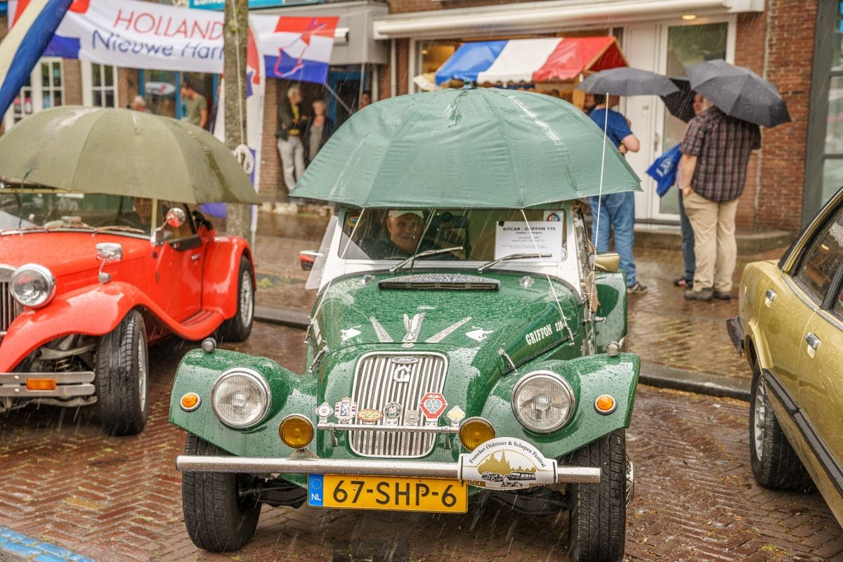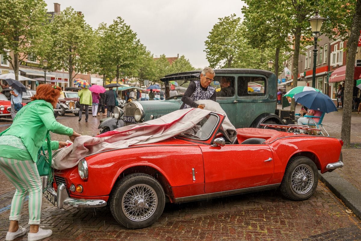 MEDEMBLIK – De weergoden dachten er vandaag heel anders over dan vorig jaar toen het stralend mooi weer was, maar ondanks de regen wisten de bezoekers van het Oldtimerfestival in Medemblik wederom in grote getalen het mooiste stadje aan het IJsselmeer te vinden en te genieten van al het moois op 2/4/6 of nog meer wielen.
