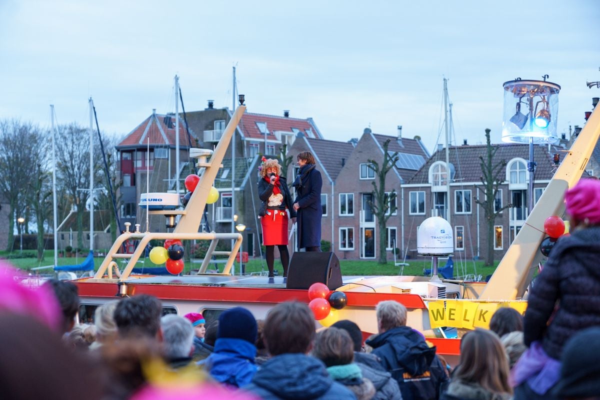 De Oosterhaven afgeladen vol met kinderen die de stembanden schor aan het zingen waren, ouders die ook stiekem aan het meezingen waren en zelfs de ‘stoere’ jongeren zongen de sinterklaasliedjes mee.