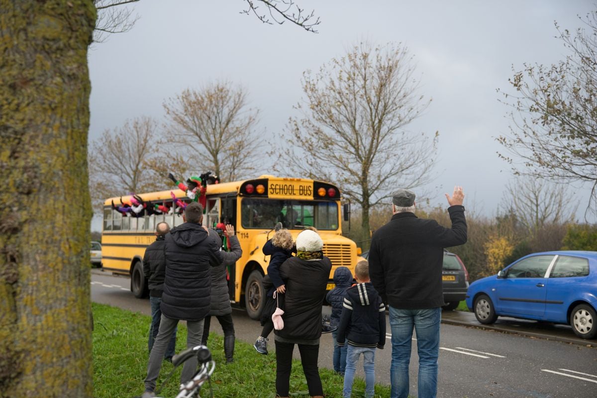 WERVERSHOOF – Dik aangekleed, paraplu’s mee, handschoenen aan, de mijter vastgezet met elastiek, ja Sinterklaas was er helemaal klaar voor om ook de kinderen in Wervershoof te bezoeken. En ondanks het weer, leek wel of heel Wervershoof was uitgelopen om de goedheiligman en zijn (stuntende) pieten te ontvangen.